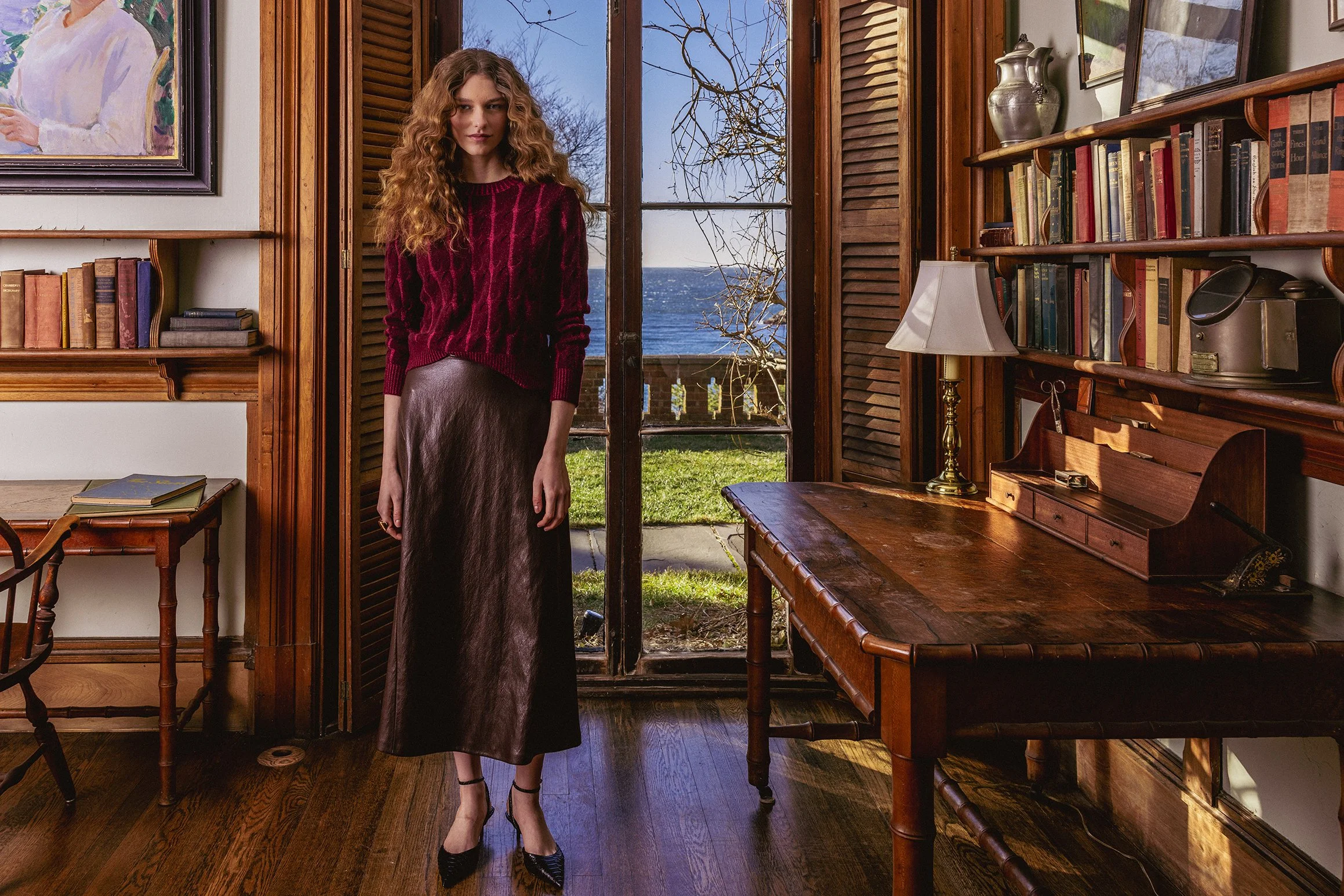 Experience the luscious green shades of Scotland's Highlands as you stroll the Royal Mile, explore ancient castles and enjoy a picturesque train journey. Inspired by the fair-isles, this capsule features prints, jacquards and plaiting enhanced by nature's greatest tones. Begin by layering our essentials and adding the cozy novelty pieces you need for your dramatic moments set on the majesty of this poetic scenery.