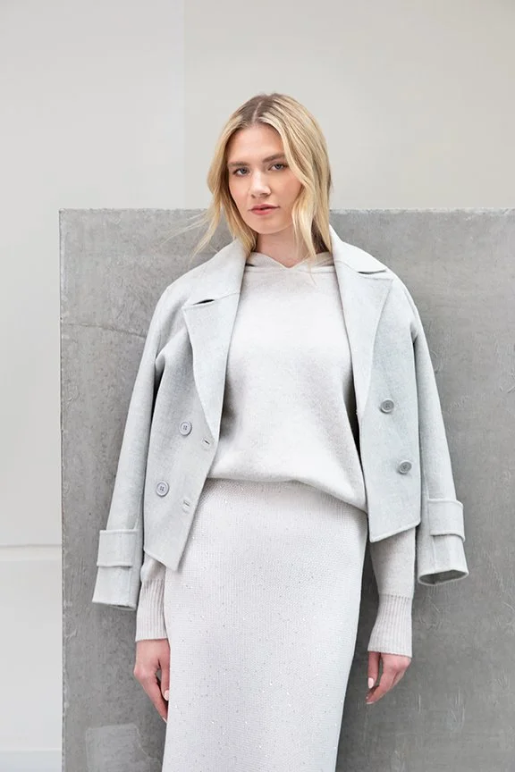 The three must-have silhouettes for Resort 24 are the Vest, the Short Trench, and the Haute Hoodie. Each item is unique in that it can be styled in multiple ways and worn from day to evening.